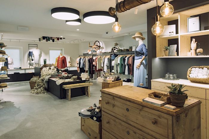 Das Ergebnis? Psairer Sarner, die Wind und Wetter trotzen – traditionell ohne oder lässig-modern mit Kapuze. Jeder Jangger, jede Jacke entsteht in der hauseigenen Schneiderei rund um Tochter Franziska – natürlich auf Maß, Farbe, Knöpfe und Futterstoff nach Wunsch. Daneben stellen sie Sarner Toppar (Filzpantoffeln), Socken und Decken her. Und weil Spinnradl auch die Zukunft im Blick hat, gibt’s neben Tiroler Bergschafwolle auch Fair Fashion-Labels im Sortiment. Ein Besuch lohnt sich: für’s Souvenir, das nicht im Koffer verstaubt, sondern noch Jahre wärmt.