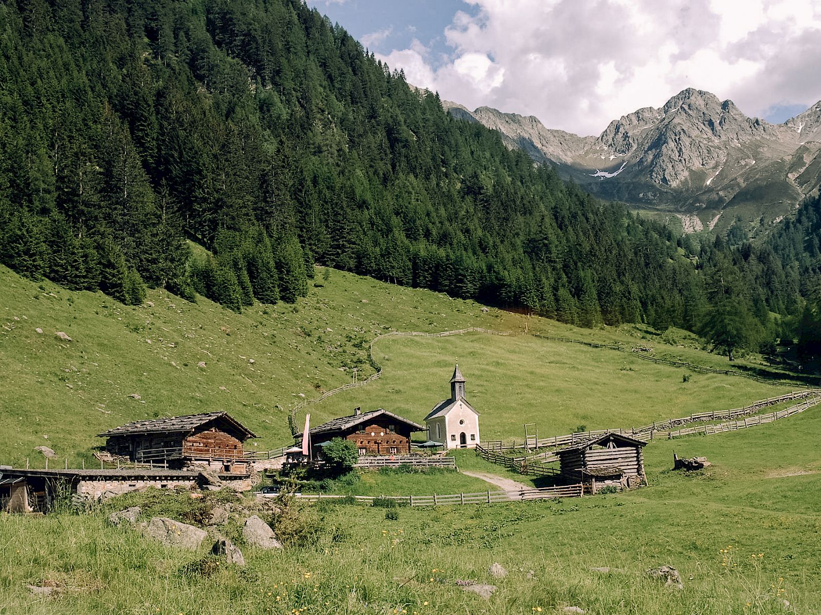 Route: Directly from the hotel, you ride comfortably into the valley along the cycle path to St. Leonhard. Then continue through the village to the Hotel Stroblhof. Turn right up the road (Kirchweg) and pass the school on the left. At the road split, turn left uphill more steeply along Platzerbergweg until you reach the Pfistrad car park. Here you follow the forest road until you reach St. Anna/Pfistrad.
